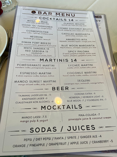 My husband and I went for late lunch. We enjoyed the food and the service was good. We will dine at Diwan again...