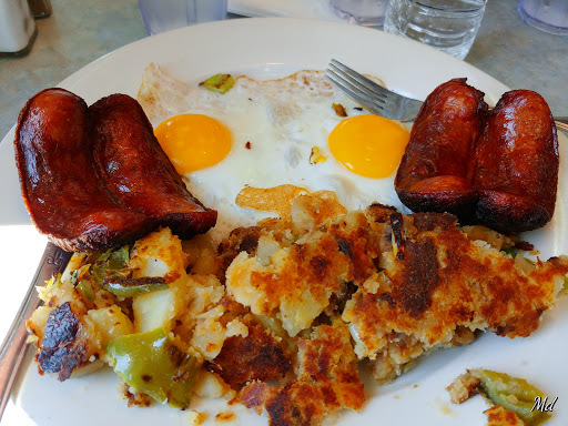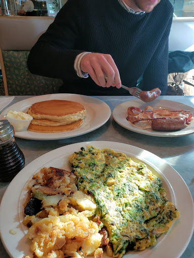Me & my girlfriend went there on a slow day apparently and within minutes of sitting down, several of the male workers in the kitchen came out to sit close enough to us and would not stop starring at her and speaking, apparently about her, in a foreign language (I believe spanish). She of course became uncomfortable and asked to move to another location which they gladly did. Sure enough, the workers all changed tables to be in view of us again. We were very hugry and stayed anyway. We even mentioned it to the waitress and she acknowledged that they do that and she cant say anything to them. We complained to the owner on our way out who said she could not believe that her workers would do something like that. Needless to say, we dont go there anymore. We go to the more decent Omega diner just down the block.