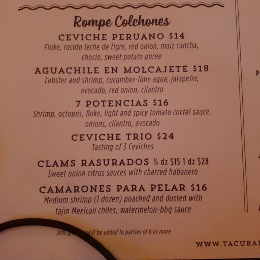 Cricket tacos ! Finally, the tacos de chapulín were available. So delicious. 3 little tacos filled with crunchy-tender little crickets that surprisingly gave a mild aroma of soy sauce. If you didnt know (or see) that they were crickets, youd simply think that it was something delicious. Other times, the ceviche—there are various options for the fish—is also wholly worthwhile, fresh and often spicy. Portions are filling without being gorging, which is appreciated, as is the fact that the music is kept low enough to converse. Service can be... relaxed. It would be good to see some Mexican craft beers here, as the only ones available are mass-produced corporate lagers (and 1 local brew).