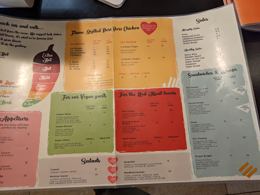 I see a few poor reviews scattered in here about the chicken patty which takes away from this places shinning star, the Peri chicken! I came across this place looking for something different to eat in the week since I missed groceries this week. I asked whats the go to here and was informed that its all about the peri chicken strips over rice. Im about half way done with my meal and Im 100% satisfied. Its a great option for eating out and not feeling so bad after. Ill definitely return to try the next level of heat on the chicken. Hope theyll be able to ditch the food thats bringing them the not so nice reviews and focus on their chicken, this place can really be something special.