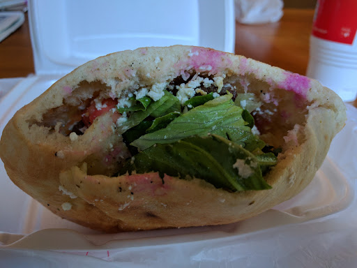 This has become my favorite quick service Mediterranean resturant! My first try I had one of their Manakeesh flat breads - the Beef Lahamajeen. It was a light dish with enough spice and flavor to leave you satisfied yet wanting more. (I love cinnamon in savory entrees!!) This would be a great item on the go if you fold it like a pizza slice. On my second trip I had the Beef Shawarma Pita with strips of rotisserie beef, tahini sauce, lettuce, tomato and spices. It also included onions (not mentioned on the menu) which were fresh, crisp, and offered a nice contrast to the mild and creamy tahini. OUT-OF-THIS-WORLD!!! The pita didnt look like much when it arrived, but as soon as I picked it up I knew I had a fight on my hands. Do I eat it all or just half? Lemme tell ya, halfway through my breathing got shallow. The beef was smoky; marinated to perfection. It had a bit of crunch too, which may have been due to them giving me the last bits as I arrived near closing time. I didnt mind. They filled that sucker up and it was so good! The silky tahini sauce was tangy with a mild finish. I licked some excess off the plate. I wouldve licked it clean had I not noticed the kitchen staff was packing up. Im already planning my next visit. I hope to bring a group so we can pass our plates around. Definitely a winner!