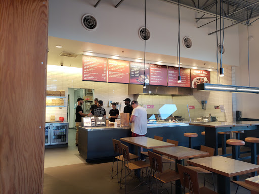Love going here for lunch - too much! The food is very tasty. For the number of people that are often there in line, the service is incredibly fast. You will get different portion sides of rice/beans depending on whos scooping, but Ive asked for more before when the amount seemed small, and was happily given it. The atmosphere is somewhat of a noisy lunch crowd. I wouldnt go there to try to get work done, but to grab something to go, or to chill with a friend, its a great place. Love the outdoor seating in the warm weather too.