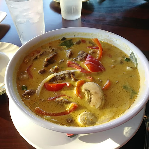 Second time coming back here. LOVE the Coconut Curry Chicken bowl. Literally enough for two peoples full meal, though we supplemented with crab rangoons (above average) and pork fried spring rolls (good). We had tried the pork belly steamed buns last time and didnt particularly care for it. A friend ordered off the Chinese menu and got General Tsos Chicken, which can be made spicier, with fried rice included. He said it was above average and the chicken was nice and tender, not overly bready as had at other Chinese restaurants. The serving size was huge! Thai iced tea is a bit on the sweet side the previous home, but delicious, nonetheless. And we got it with the bubbles this time, but the Thai iced tea tasted better last time. Today it seemed as if the tea were steeped too long, and they make it with condensed milk instead of half and half as Ive had at other restaurants, but adding extra condensed milk made me like this more. Employees are kind and helpful. Service was faster the last time we were here, when the restaurant was more crowded. Its a clean and quiet place. Though they do have their own parking lot, it can be tough to get good parking because the lot is small and is in an L-shape around the restaurant. Highly recommend it for an easy lunch or dinner for reasonable prices.