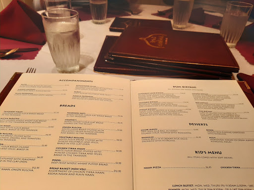 We went to lunch on Saturday at Raj Mahal. The buffet was upscale compared to most of the Indian restuarants in the area. Included in the buffet were dosa, plenty of vegetarian and meat options, three desserts, mango lassi, and chai tea. The staff was very courteous. There was a proper discount for our children (under the age of 5). Best of all, the cleanliness and display were excellent. Highly recommended.
