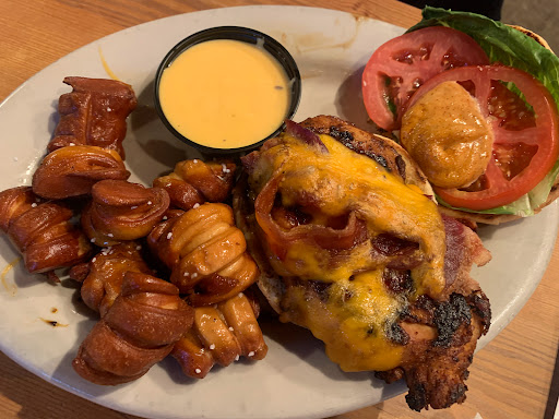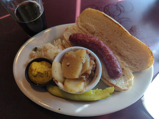 German bar food classics mixed with some more American faire, we found the burger to be made with a far too large sandwich roll and a mexican inspired chicken salad to be somewhat lacking in general flavor. Excellent beer menu as should be expected and I was given a few different beers to try before selecting one for the meal. The overall result being a bit disappointing for an independent brewing company, but maybe Im just not that much of a beer person.