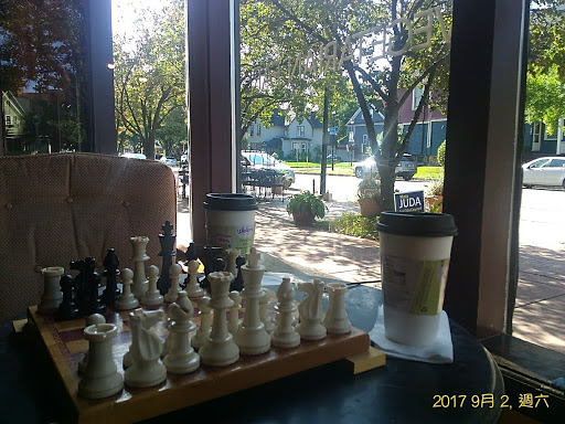 This Coffee shop is one of the better ones Ive found around Rochester. The staff are all friendly and accurate, I have only once had an order mistaken and it was immediately and respectfully fixed. The food and drink selection is good, they serve pastieries, several full meals, sandwiches, soups and sometimes pies or cakes. They have a wide variety of coffees and teas as well as seasonal mixes and some alcoholic drinks. The sell coffee beans by the pound and offer free wifi and board games. the decoration is warm and interesting, including a large mural blending two of Vincent Van Goghs works into a wall length landscape.
