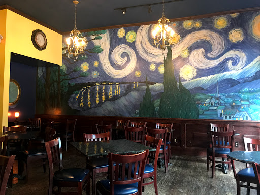There are moments when you just dont want to stare out into the sky alone, so head over to Starry Nights instead. This café is nestled right in the heart of the Neighborhood of the Arts (NOTA), and the artwork inside the place does not disappoint. Immediately you are welcomed with a HUGE mural design on the side of the wall of a spectacular nighttime aurora. This happens to be a great spot to meet people, because there are plenty of comfy seating areas. This is by far the BEST outdoor patio out of all the coffee shops in Rochester because it gives you a birds eye view of all the men going into the Bachelor Forum. You come here for the unique coffee flavor combinations you cant seem to find anywhere else, and the dessert case is primo! It is also a bonus to look at the variety of artwork in the bathroom stalls, which makes time pass by more quickly. This is also one of the few cafes in the area where you can purchase a variety of wine with your dessert. While the food portion is just average at best, the cheap pricing point will have you ordering another sandwich next week. Starry Nites has a variety of cool game boards to play on, which can take that initial date up a notch when the other person doesnt seem to be doing a whole lot of talking. Starry Nites is also home to many local live bands that perform routinely. Google! Tip- make sure to ask about the Happy Hour, and the special $9.99 for a pound of coffee. Business is doing so well at Starry Nites that they have added an additional location right in the Downtown Public Library. As the theme of the place says, "Skinny People are Easier to Kidnap, go grab a Bon-Bon", couldnt have been closer to the truth. COFFEE: The University is one my favorite coffee combinations, and it represents the NOTA extremely well. This coffee is blended with a combination of vanilla, and peppermint flavoring. Some can say this is a coffee with a twist, and judging from the cliental here, no complaints. The Bishop is another amazing coffee flavor bomb, as this combination combines vanilla, cherry, and white chocolate. Have no fear, since these specialty drinks rotate on a daily basis, you can always ask for your favorites to still be made. COFFEE COCKTAIL: The Moose Crossing is simple, but tasty as it combines chocolate and Kahlua. This is a great coffee cocktail to have as well before that first initial meet and greet with someone, because no one but you will know there is Kahlua in your cup! WINE: they have a nice selection of California Red Wines which I enjoy, while there white wine selection is a little amateur at best. Go for the Cellar Number 8 merlot which has a nice spicy, med-bodied taste that goes down smoothly. Google! Tip- on cold winter days ask for their MULLED WINE, which is a special treat when available here. DESSERT: Starry Nites is home to the FAMOUS Peanut Butter Bon-Bons, and these chocolaty treats are so creamy and delicious. The chocolate is placed smoothly around the peanut butter center, and gives a nice snap when biting into it. You are definitely going to have chocolate face before you leave here!!! QUICHE: The quiche is amazing here, and another signature MUST-HAVE item to try. You can get these quiches in either a vegetable or meat form. I had a quiche that was filled with mushrooms, leeks, and spinach, topped with melted Swiss cheese. It passed the quiche test, as the fork cut right through the center like sliced bread. All the ingredients remained intact, as the melted Swiss cheese kept the quiche together. DAVINCHI DUO: Apparently Leonardo DaVinchi had a partner who also was also an artist, mums the word but I heard this duo represents the owners. Judging from a ton of rainbow flags outside the building, this is probably another right on assumption. The half-sandwich/soup combo was just average to me as the Chicken Salad had no seasonings mixed in, making it a little bland.
