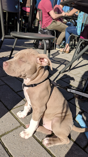 Friendly staff, nice atmosphere. I prefer the outside seating by the fire pit because if you choose a bad seat on the inside youll be right under a speaker and will have to yell to talk to the people in your party. Sometimes when I have gone a staff member came over to our table to take orders, but last time we had to go to the bar - not sure exactly which way it is supposed to be. Definitely more expensive than buying a 6-pack at Wegmans but the location is so convenient that I wont complain.