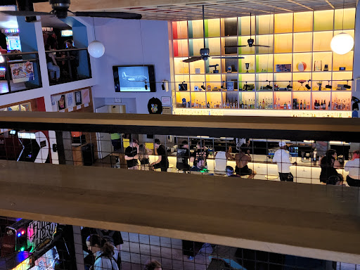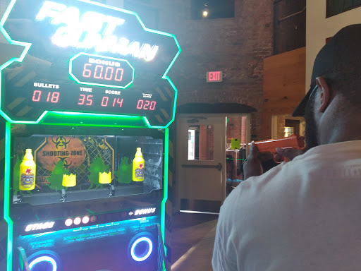 This place is, for lack of a better word, awesome. Easily the best burger Ive ever had, and the best fries Ive had in a long time, too. I cant speak for the booze, but my brother and mother both seemed to enjoy it quite a bit. As for me, I was quite satisfied with my rootbeer as well. Whats more, there are arcade machines here. Amazing ones. I havent gotten to play Galaga in so long! I also greatly enjoyed playing Game of Thrones pinball against the family, which was easily one of the most complex pinball machines Ive ever seen. The food is great. The entertainment is great. The location is great. The restaurant itself is very sparsely decorated, but serviceable; you dont really need a huge, grandiose decor budget when you have two lines of back to back arcade machines. I love this place. I cant recommend it highly enough. If youre in the area, try it out for the food if nothing else, and inevitably end up staying and spending far too much on Street Fighter.