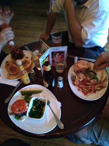 Bartender and waitress not that friendly, burgers are either not cooked or charred. Salmon was great. Unfortunately their judgments are cloudy when the "owner" comes around.they made some false accusations about us being drunk in public. They obviously were mistaking our group for another. They called the police when I asked for a water and used the bathroom, leading to one of my friends getting arrested for no reason. The police did not take a statement from anyone except for the bartender. I will not be supporting this establishment or anyone in saugerties for that matter.