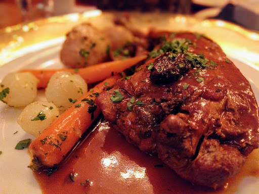 Second time here and once again the food is pretty good. This time it was Restaurant Week and we both had the Mushroom Bisque, Coq Au Vin, and the Apple Tarte. The soup was good, maybe just a little under seasoned. The Coq Au Vin was very good, with tender and moist chicken, perfect potatoes, onions, and carrots. We had to split the last Apple Tarte because they ran out. They have us vanilla ice cream to replace the second Tarte and it was pretty good also. I would have given Chez Nous a 4 for food alone, unfortunately the service wasnt the best. Tables of people around us sat there waiting politely for their waiters, all of which are experts in avoiding eye contact. Tables didnt get cleared or took a while to, and it made me wonder if they recently fired the bus person. The hostess didnt even help clear tables or offer to refill water, which was very strange since its common for them to, and the wait staff couldve really used the help. Worse yet, the waiter never apologized for any inconveniences or delays. They couldve simply acknowledged the situation on a human level.