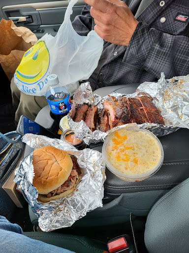 They are the best BBQ in the area. Food is always hot.friendly people very clean area to eat. The smell is heavenly.