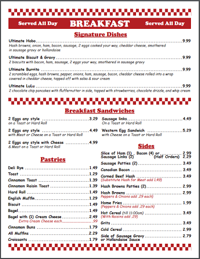 Breakfast: pretty good. Id give it 4/5 stars. They had a pretty good selection of the breakfast basics. I had the "Cindy" and it had decent pancakes but the syrup with in prepackaged singles. The bacon was good and they didnt have to much extra grease on them. The eggs were cooked to order and the potatoes were awesome. The coffee was decent as well, not burnt tasting which is a huge plus. The waitress was excellent and gave plenty of drink refills. Lunch: not that great for lunch, may 2/5 stars. It seemed like mostly frozen food. My girlfriends food was almost inedible as well. The waitress was also really terrible. Took her 15 before she stopped by to get our drink order and then ran off before we could give our food order. The food took a long time and was not fresh by the time we got it either. I would suggest going for breakfast because its good and pretty cheap. Stay away from lunch unless you dont mind going a few times to see if they have something that is good. Pretty large difference between the service depending on how busy it is.
