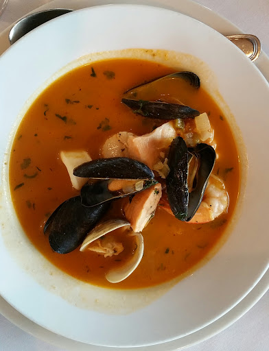 Great seafood soup. Delicious salad. Attentive staff.
