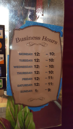 | Working: | 3–10PM 3–10PM 3–10PM 3–10PM 3–11PM 1–11PM 2–9PM |