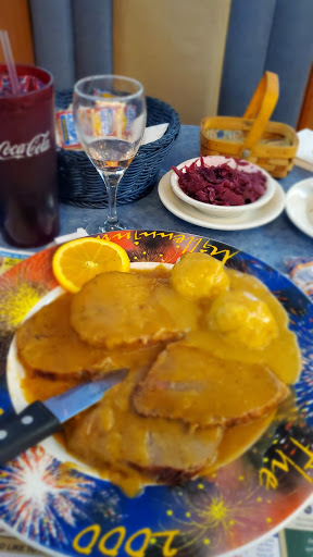 Today i just had lunch which was a burger on lettuce. But at other times weve had the complete dinner. Reasonably priced includes an appetizer, glass of wine, soup or salad, main course, choice of desert, Coffee/tea. Pleasant atmosphere Jimmy was todays waiter and always pleasant.