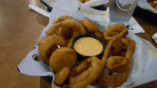 It saddens me to write this.... I dont care what people say, I actually like Buffalo Wild Wings and this one has a nice atmosphere. The bartender was sweet, attentive and did her job well. She kept our drinks topped at any time. I cant say the same for the rest of the staff. Took forever to get food for a group and waitress wouldnt come back. I stood by the basketball toss along that wall and waited by the kitchen, I saw them laughing and talking however anyone I tried to approach when they came onto the floor walked away from me. Saw me coming and walked away. I wish I could say Id bring my buddies back