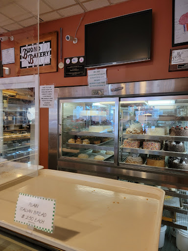 I am so sorry that I went to Buono Bakery for my wedding cake!! I met with Frankie to discuss my cake design and filling 3 weeks before my wedding. I brought a picture of what I wanted the cake to look like. It was supposed to have 4 layers stacked directly on top of one another, have creamy white colored icing, and be wrapped in dark purple ribbon on each layer. Frankie said it would be "No problem". A week before I went by there again to supply the ribbon and decorations for the cake as he had requested I do. At that time we went over again what the cake would look like and how it would be filled. My jaw dropped when I walked into the reception and saw the cake that was sent! The teirs were stacked on collums (like a cake from 1985) and it was stark white with bright pink icing rosettes on every layer. Absolutely HIDEOUS!! I was embarrassed to cut my own wedding cake. Also, the cake was filled with chocolate mouse when it was supposed to be canoli cream and the cake itself was very stale. When I called Frankie the next day first he said that my cake was still in their walk in refrigerator and then he said it had went to another bride by mistake. Do not use Buono for your wedding cake.... You will be disappointed!