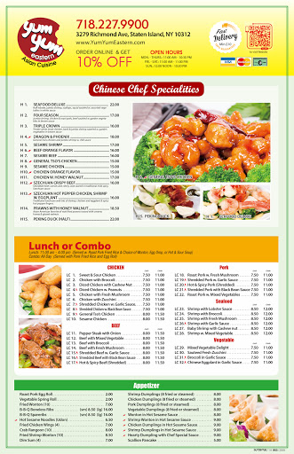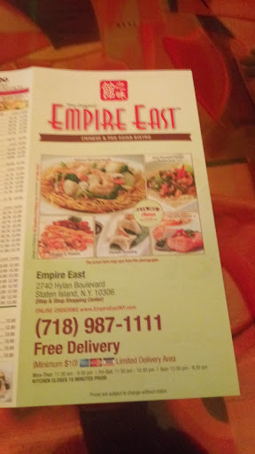 I have been eating at Empire East all my life today is the last day I ever order from them, yes inside their restaurant is clean and the service can be nice today I ordered a sesame chicken meal while I was pouring it into my dish there was 2 pieces of long black hair my hair is brown so it could not be mine. I was do disgusted and grossed out I called them up to let them know not that I want any more food from them but that is gross the people who cook the food wear hats, hats are not enough because the side of their hair is still exposed they need NETS this is the last time I eat from their in my life and probably the last time I eat at any Chinese food place on staten island because they were the most cleanest to me not anymore this is a first time thing but I dont care and their the most expensive on the island the most expensive for what so i can have hair in my food no thanks keep your disgusting food