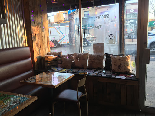 Awesome place that sells Tobys estate coffee here on SI. I love the homey feel that you get when you enter, however I wished they had more seating and/or better comfortable seats. The bench there seems to only take up space, but I guess its good for them to keep the number of people staying to a minimum! Love their smoothies as well - I had the Great Kills that had coconut milk and it was a delicious treat! Their Mr. Guac was awesome - I dont think I ever had tahini with guac before, interesting combo. They have a restroom in the back that gives me the heebeegeebees though, probably because its FREEZING in there and they have a weird barred window with all the chalk board around you. Its like people are screaming at you through the text haha! WEIRD. Will definitely come back to enjoy some more treats!
