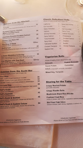 A little pricey and weird combination of foods example risotto with Japanese, however food is great. The real reason I removed a star was that I ordered an oriental steak that came with potato sticks and they wouldnt allow me to substitute it for fried rice. HaD to pay an additional $10 on top of the $30 or so for my dish to get rice.