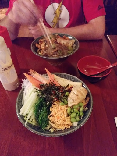 Sayori is a cute, Romantic Japanese restaurant with the option to seat cross-legged on mats. I love the flower decorations. The service is fast and the staff is super friendly. The chicken bi bim bob was a huge and delicious meal, complete with a salad and miso soup. We tried the delicious mango mochi ice cream as well. The price is right! Great job on providing a pleasant and enjoyable experience!