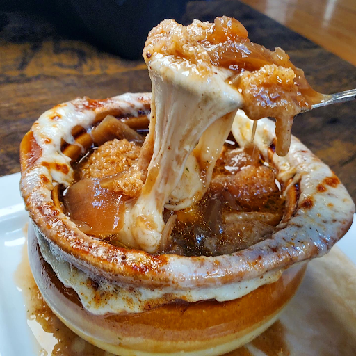 Great French onion soup but way to expensive 11 bucks for a grilled cheese sandwich that sandwich better do things your girlfriend wont