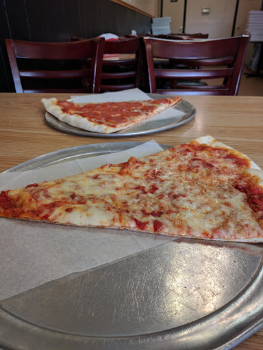 Giant slice but they consistently under heat the pizza. Warm is not my forte. Not the friendliest group either. Good in a pinch.