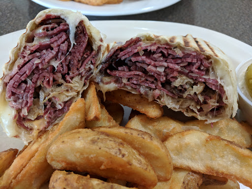 Stopped in for lunch 6/24 while traveling thru. Ordered the brisket on rye. Service was good and the meal timely BUT...that first bite revealed a tasteless and VERY RUBBERY brisket. Difficult to chew...came with a cup of gravy that, when applied, added 0 taste. Did not eat it and told server my opinion that it was the worst brisket sandwich Id ever had. He took plate away and saw him mention something to DINO, who looked up at us. Expected something from them like an apology or at least to take it off the check but that didnt happen! In fairness, my wifes chicken sandwich was very good. Had us pegged as tourists I guess. Wouldnt ever go back.