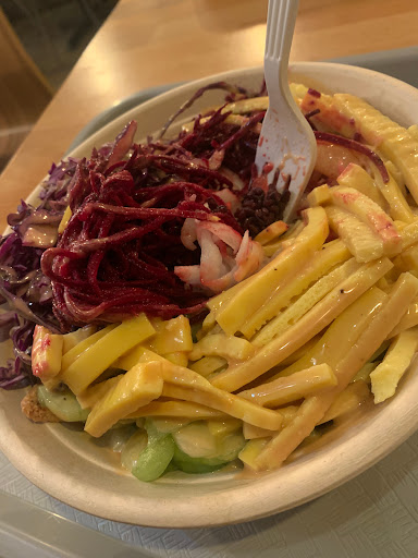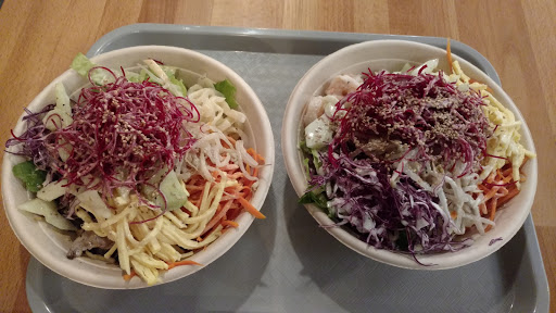 Nice place for a quick bite to eat. Choose a base (white, brown, or purple rice, or lettuce), pick a protein (beef, chicken, pork, shrimp, or tofu), add all the veggie toppings you like, and finish it off with your choice of sauce. The staff are very nice and the area is super cute.