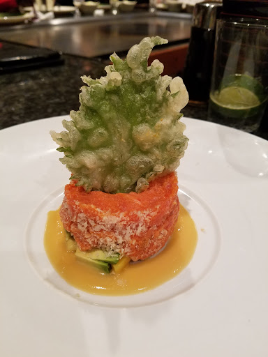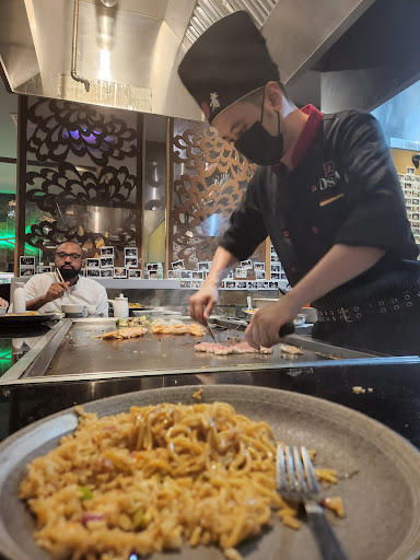 I wanted to take my dad for a good time for his birthday, so I thought to take him for hibachi so he can see a new way to eat his food. The chef was doing a great show and a few tricks while he was cooking our meal: 1.Knife tricks: Fancy cutting of shrimp or vegetables; also juggling, clanging and tossing 2.Big fire: Shooting flames 3.Onion volcano: Onion slices are stacked; vodka poured inside and set aflame. 4. Pee-pee boy: Rubber squirt toy puts out fire of onion volcano 5. Egg tricks: Tossing and cracking, usually while making fried rice 6. Beating heart: Fried rice is formed into heart shape, spatula inserted underneath makes it appear to "beat." 7. Food toss: flung into the mouths of audience members For my food a had The Hibachi Duets: Steak & Shrimp; a big portion that come with rice, steak, shrimp, noodle and vegetables that had a very good taste. My mom also had the same thing. My dad had some Hibachi Salmon and he loves it.