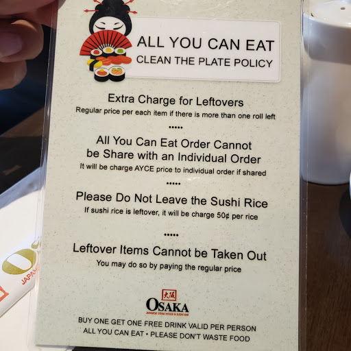 All-you-can-eat sushi that does not skimp out on quality is a rarity that Osaka excels in. Their tempura remains the best that Ive had and their service is top notch. If youre ever in nearby, this is definitely a detour to make.