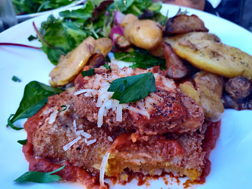 Best fried chicken fingers Ive ever had. I was told by the server that the chickens were free range and allowed to roam in real grass. There must be something to that, because the chicken really was quite good. But that wasnt even what I had, those were for my toddler. I had these amazing grits under some sunny side eggs and my wife had quinoa cakes with eggs Benedict and sweet potato home fries. Very good. We arrived early and had good seating near the window, but the server did warn us to make reservations during the busy season.