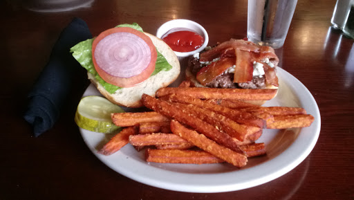 Pleasant atmosphere for a lunch or dinner. Very relaxed booths and tables up the 3 stairs from the pub. Friendly staff, very clean with big bright store front windows. Large selection of food for different needs. Nothing overly salty or greasy. Good food ( not gourmet.....) but good for a local place.