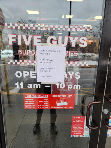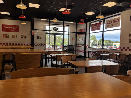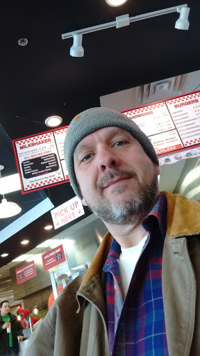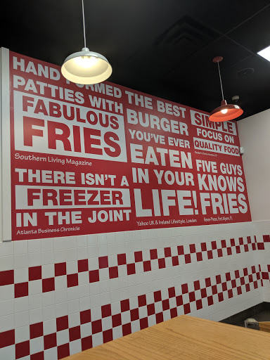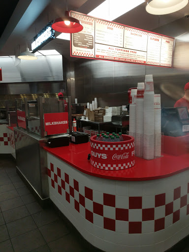 Regular Five Guys. You can choose your Burger and the toping, get as much peanuts as you can eat and can refill your drink. Good place for a quick bite.