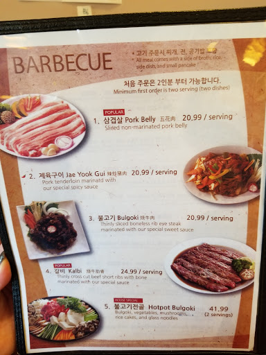 리뷰 평점보고 갔다가 완전 실망한 case.. BBQ갈비와 순두부를 먹었는데 무엇보다 맛이 없고 맛 대비 가격은 비싸고.. 갈비 고기 상태도 좋지 않은 느낌..지금까지 미국과 캐나다에서 먹어본 갈비중 최악! 회사 사람들 위해서 한국식당 발굴하려고 구글맵 검색 리뷰평점이 좋아서 1시간 운전해서 갔는데 너무 실망.. 차라리 2시간 운전해서 뉴저지 포트리의 북창동순두부를 가는 편이 훨씬 더 좋을 듯..