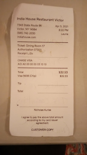 Ive been to India House out in Webster and in the city many times. My wife and I go to both of those often (we live pretty centrally between them). This location has all of the quality and environment weve come to expect of India House. The Chicken Makhani was amazing as always.