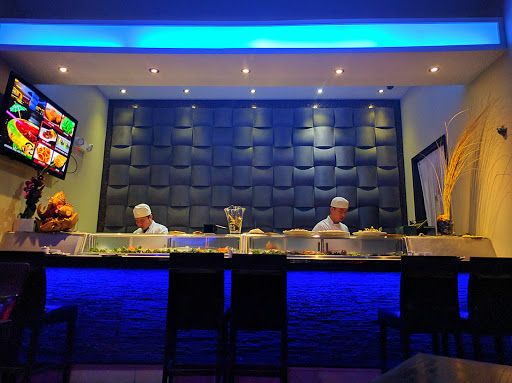 I have always been a huge fan of Umi, mainly for how beautiful the interior of the restaurant is. I developed a good rapport with the owner Jason who made leaps and bounds on improvements to Umi since the restaurant first opened. It was amazing going to the restaurant, and being treated like a VIP. My date and I got seated immediately at the next hibachi table to get the dining experience started. Like I said before, the interior of Umi is SPECTACULAR, like an modern NYC flashy nightclub feel with a Umi Bridge/River. Now as usual the service is not that great, where getting a hold of your server always seems to be challenging. So I know better to order something ahead of time, even though I want to order it 10 minutes later. DRINKS: top notch cocktails at Umi, they had a DRAGONS BOWL for $12.00, split for two. The Dragons Bowl then gets lit on fire underneath ( of course I had one, and your date will be impressed too by the special effects of it). Other top cocktails are the Umi Special, and Umi Punch ( all tasted amazing, well balanced with liquor and juices). The Sake is equally amazing, both hot and cold. Plus my hibachi chef was VERY generous at shooting saki in my mouth at dinner. Ask for a Sake Bomb ( sake dropped in ginger beer, comes with its own show!!) APPETIZERS: ALL of Umis Appetizers really meet the mark for me. The Ika Naruyaki BBQ Squid tastes amazing, and I never had squid before in my life. Its sauteed so well with the BBQ sauce, I did not even think for a second I was eating Squid. Shrimp Shuma- Steamed Shrimp Dumplings were so tender that I wanted more, the sauce to dunk them in seals the deal...sweet and savory. SUSHI: Now Umi does have its own dine-in table area which is extremely elegant/fancy. Specializes in just kitchen/sushi orders. Were nice wooden chopsticks are the only utensil on the table (forks are asked for). There is also a sushi bar where you can see them make the sushi in front of you. I always order the Specialty Sushi, because each one comes with its own art design with flashy lights on your plate by the Sushi chef. Top ones are the- Baja Roll: Eel, Spicy Shrimp Crunch, Avocado, with Soybean Chef Special Sauce, Super Man Roll: Soft Crab Tempura, Spicy Tuna Crunch, Lettuce, Soybean with a Two Flavor Sauce, Umi Roll- Spicy Yellowtail Crunch Topped with Tuna, Salmon, Seaweed, & Salad Tobiko. ALL there sushi is made with top quality ingredients, and fish from the local Asian food markets. HIBACHI: Alright on to the MAIN EVENT. For starters, 10 STARS for having an AMAZING/EXPERIENCED Hibachi Chef. The show not only impressed my date, but it impressed me as well. It comes with Onion Soup, BUT ask for the Meso soup cause it tastes ten times better. You can get the standard onion soup like that anywhere. UMI HAS THE BEST ASIAN SALAD DRESSING--thats right I said it...THE BEST, I can eat that stuff by the bucket. A balanced blend of ginger and sweet potato, compliments any salad. I ordered the Land and Sea: filet, chicken, and shrimp. The filet tasted amazing, and was extremely tender..the ginger sauce that came with it really complimented the steak. The chicken and shrimp, were equally juicy/moist which was complimented by the shrimp sauce. My date even caught the shrimp in his mouth by the Chef!! I missed a million times. The Fried Rice had a lot of flavor and seasonings, the egg in it does the trick. Here is where Umi looses a STAR, they DOWNSIZE and DOWNSIZE their portions for EVERYTHING every-time I come there. Its a shame because I still felt hungry after leaving the Hibachi table. The prices keep rising, and their portions keep getting smaller and smaller to the point as much as I love the restaurant, I might not be back. I can over-look the slow service of the wait staff, but not the under- portioning of the food.