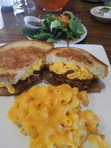 We just ate there last weekend. My boyfriend had the Cheesesteak and I had the Cowboy. Cheesesteak is self explanatory! The Cowboy was stacked with brisket, american cheese, mac & cheese on grilled sourdough bread - So Yummy!! Had smoked cheddar cauliflower for my side and it was deeelish!!! Cant wait to go back!