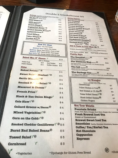 I have eaten at Double S in Warwick multiple times and have never had a bad meal.I enjoy the variety of side dishes and particularly like the smoked Brussels sprouts and smoked cauliflower The service has always been attentive and courteous. They also have a full bar but my favorite is their different sangrias.I recently had the watermelon sangria and it was awesome.