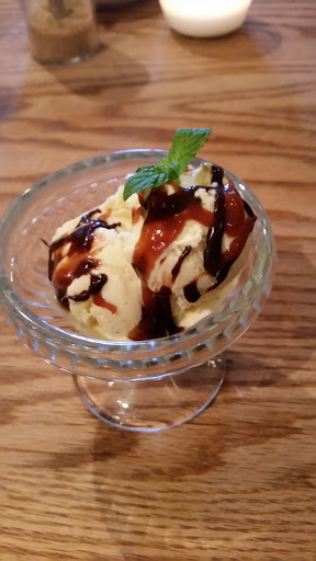 First visit here tonight. My fiancé and I came here for dinner tonight. The waitresses and chef were very nice people. They were very welcoming. The place is small, historic and quaint. We didnt order an appetizer but we each were served an appetizer bite that was a tomato stuffed with cheese and (I think) a balsamic vinegar. Very delicious. Then we had warm rolls with what tasted like a garlic and herb infused oil that was very good. We both had the skirt steak with roasted kohlrabi, broccoli rabe and fingerling mashed potatoes with a glacé that was incredibly delicious. The portions werent huge, it was just enough food. My fiancé had the banana split for dessert and I had the vanilla ice cream with some fudge on it. Everything we ate was delicious and we look forward to going back. I believe reservations are required. They also sell locally made products.