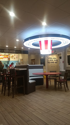 Pretty typical for a KFC. The staff was helpful and pleasant. The restaurant is older and in need of renovation, but otherwise clean and well kept.