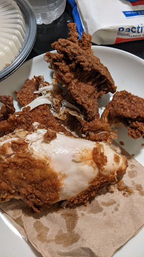 Food thats fried is most of the time harder that it should be. Noticed that orders get mixed up ALOT. Place gives off a dirty vibe when dining in. Chicken itself is good though.