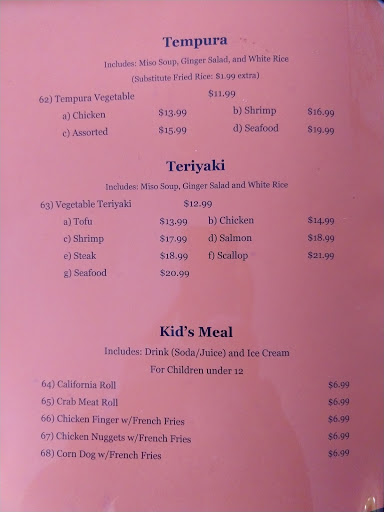 It looks small from the road but slow down and park in the rear parking lot. Then open the dinning room door from the back porch, and you will find a bit of Orient. The menu is extensive, and pictures are supplied with each named item. Our server was very good, and knowledge. He has a great culinary background. The whole place was spik and span. the food was farm fresh, crisp, and well cooked. With our meals we started with a Mizo soup that was different, but was very tasty. Then a crisp salad plate with homemade ginger dressing. Excellent. Our main course were presented in a nice sectioned plate. I must say, do yourself a favor, and stop by for some authentic Oriental fare. They also have a lunch menu and was limited, and price point was very agreeable. Hurry up cause I will be headed back soon.