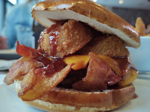 First visit tonight, still busy waited about 40 minutes at bar. Drinks were well made, it is very loud in bar area. I had the sliders special with bacon jam and fries, they were a bit rare for me but tasty and plenty of food. Seems like they are working out the quirks with staff. We will be back!
