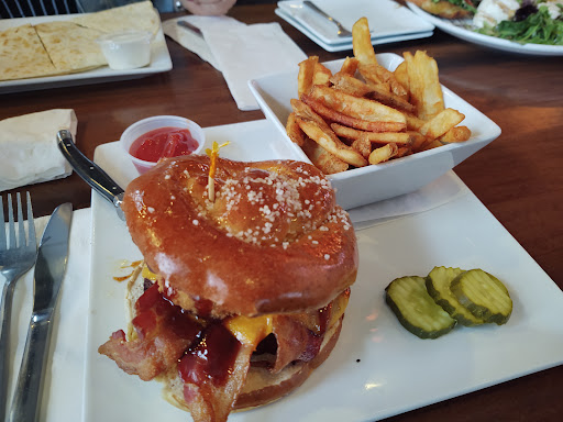Very nice atmosphere. We ate during week day lunch hour. We sat in the bar area but there is also a dinning room. Menu was what you would expect from a "pub" along with more meal type items available later in the day. They offer several sides with their meals included in the price including mac salad, waffle fries, chips, reg fries etc... All three meals were excellent. Me - Smokehouse burger? Really tasty and cooked perfect. Mac salad side was also good. Bride - Chicken tenders. More like small battered chicken breasts. Very good and different then traditional tenders. Son - Had a wrap that he loved. Waffle fries for the side were also cooked nicely and were very tasty. Prices were reasonable and quantity of food was well beyond adequate. Only caveat was the length of time for our order to be cooked. The table behind us sat down after us and was served well before we were. Our food was hot when it finally arrived making it likely our order was misplaced. Would have rated 5 stars if not for this hiccup. I have been recommending to friends and will visit again without hesitation.