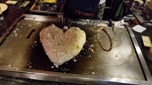 If I could give 0 stars, I would. I eat out all the time and have waitressed in a lot of restaurants, and have never had a worse experience than this place. So bad, I am compelled to write this review even weeks after visiting. We arrived the ONLY table in the separate, not hibachi grill room (which FYI is separated by a wall with windows and a closed door in it... what is up with this setup??? super strange and tacky looking). Many staff walking around, and even a manager looking person flitting around the bar/hostess area, yet NO ONE came to talk to us for OVER 30 minutes. Normally, I would have got up and addressed this with someone, but out of respect for my date, stayed at the table to talk and look over the menu. Another table arrived. They got service in a few minutes. I was astonished. Obviously, someone had been keeping tabs on the area -- yet didnt think to get the attention of the waitress who was supposed to be taking care of us??? This waitress walked right by us, no look, or anything. I stopped her as she was passing us by and let her know how very long we have been waiting with no attention. She looked annoyed and said, "Well Im not your waitress... Ill go get her for you". Another waitress came to take our drink order and rushed off so fast we couldnt get a food order in. She dropped off the drinks with water dripping all over her hands. She forgot the drink order my boyfriend ordered, said she didnt hear it, and the funny thing is -- she repeated it to us when she took the drink order! The whole time she then served us, she would drop off food, and run right off before I could even ask her for something. For instance, our silverware. When she finally brought that, she dropped it loudly on the table with other plates in her hands. Just jarring, tacky, unpleasant. Not the kind of attention you want after you have been waiting for 30 minutes to get service. Now, the food: The soup came out, and under the red glow of the lights directly over head of our table -- everything looked so disgusting. The soup was basically broth, with 1 or 2 onion strands in it. I like seeing my food... and I couldnt get a good idea what the soup even looked like other than that. It was tasteless, thin, and unappetizing. I asked about adding onion crunchies to my sushi. She was like, oh, you like onion crunchies?? okay, Ill give you a lot. I never said I wanted a lot. The sushi came out with a MOUND of onion crunchies on the top. Like nothing I ever saw before. Where is the manager, chef, or some kitchen staff checking these dishes before they come out?? Completely amateur, and GROSS. I had to wipe all of these onion crunchies off of the sushi, to only find the sushi was STUFFED with them as well. Terrible. The fried rice was awful, what a let down. It had the texture of box rice and had no veggies in it. The hibachi was drenched with soy sauce and was delivered with no meat, because she misheard our order. All in all -- tacky ambience, horrible service, and yucky food. Would never go back. No one should ever waste their money at this place. There are far better hibachi places in Rochester.