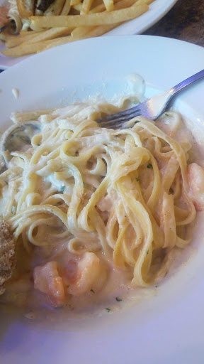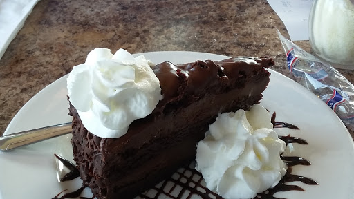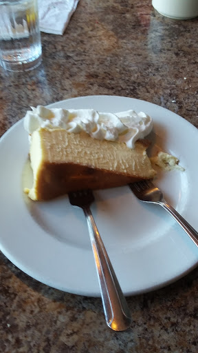 Very convenient location on Sunrise Highway. Very pretty interior. Beautiful etched glass between the booths. Comfortable seating. Im no forensic expert but everything looks *very* clean! :) Beer, wine, plus a full selection of liquor. The desserts look yummy - I see chocolate cake, carrot cake, cheesecake, lemon meringue pie, toasted almond, and several pies. Side note: they have fried ravioli on the menu... but they dont have fried ravioli. Girlfriend was in the mood for them tonight. It was a bit of a letdown. And it doesnt sound like they ran out yesterday or earlier today - it sounds like theyve stopped offering them. :-( So we started with mozzarella sticks. They were good. Terrible? No. Awesome? No. Good. The tomato sauce that cane with them? Not great. A bit too sweet for me. For dinner I ordered a special - roast 1/2 chicken with apple raisin stuffing, potato (I chose mashed), & vegetable (I chose corn). The chicken was tender and juicy. The mashed and corn were excellent - the mashed tasted like real, homemade mashed potatoes. The gravy was good. The Apple raisin stuffing... yeah, not great. But overall, very tasty. We took a piece of the toasted almond cake to go!! :)