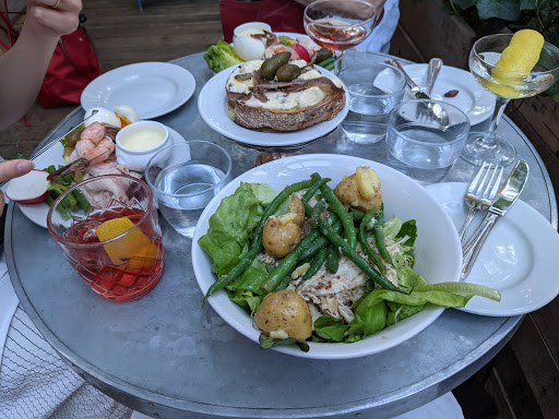 A West Village / French favorite! Everything here is tiny and cute - the plates and cups, the tables and stools, the space itself, the food/portions, the outdoor patio. The food is delicious but portions are pretty small for the price, so expect to order a couple things or a bunch of dishes to share at the table. Great spot for breakfast/brunch, especially on weekday mornings when its less crowded. Go when its nice weather and sit on the back patio/porch! Highly recommend the waffle or avocado toast or the omelette special (if they have it) for breakfast, along with any of their coffee drinks. For dinner, coq au vin is incredible, artichoke is a good shareable dish for a group, and a selection of cheeses is a must - especially paired with any of their solid list of wines.