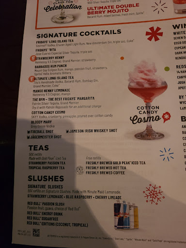 This is my go-to fridays. Which is also usually my go-to restaurant. Ive been coming here since high school. Ive definitely experienced a slew of problems here, such as long waits, poor service, and even once incident of food poisoning..but they are very far and few between. 50% of the time Ill get a friendly server, fast service, good food, and a clean atmosphere. Its stood the test of time over the course of my life. I guess the big issue is that it can be hit or miss--but I think thats more depending on how busy it is, and what kind of server you get. However, Ive also had trouble spending gift cards here--none of the servers seem to know how to use them! And dont get me started on asking them to "split the check". I always get charged the full amount and end up having to call corporate. I used a gift card once and they ended up using up the whole thing when I was led to believe only 15$ would be used. I called their customer service line and I was LAUGHED at, before being told I would be sent a bonus bites gift card(never got it) Positives: Good food and atmosphere, you can USUALLY have a good time. Negatives: The servers usually dont know what the hell theyre doing and it can end up costing you.